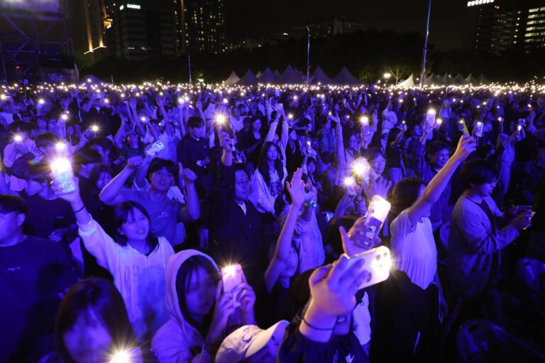 평촌중앙공원에서 3일동안 열린 2025 안양춤축제가 폐막공연을 하자 청중들이 스마트폰 불빛으로 호응하고 있다. 안양시(c))
