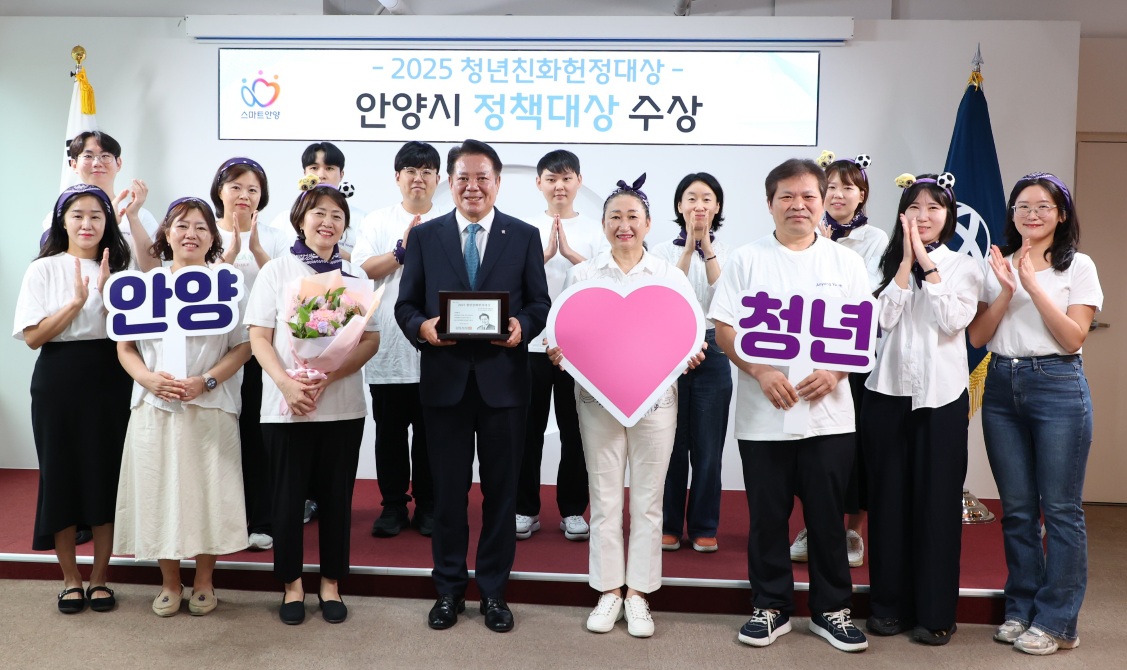 청년주거 안심 정책・청년인재 등록・청년공간 개관 등 성과 최대호 시장 “청년들이 꿈 키우고 안심하며 도전하도록 든든한 버팀목 될 것” 안양시는 국회사무처 소관 사단법인 청년과미래가 주관하는 ‘2025 청년친화헌정대상’ 우수 기초자치단체 평가에서 정책대상에...